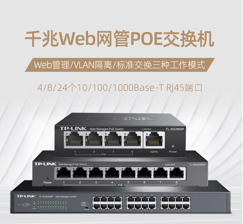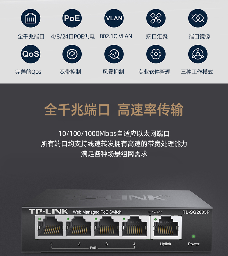 以太網(wǎng)交換機普聯(lián)/TP-LINK全千兆Web網(wǎng)管PoE以太網(wǎng)云管理交換機5口千兆TL-SG2005P/臺