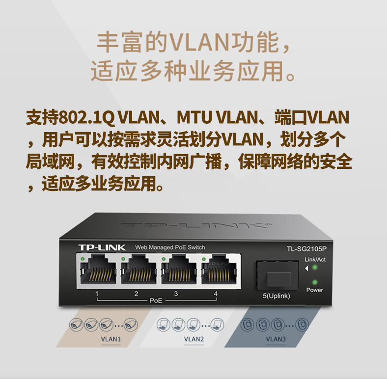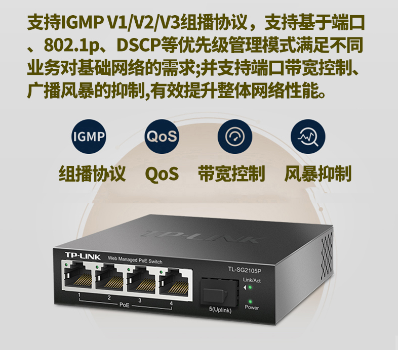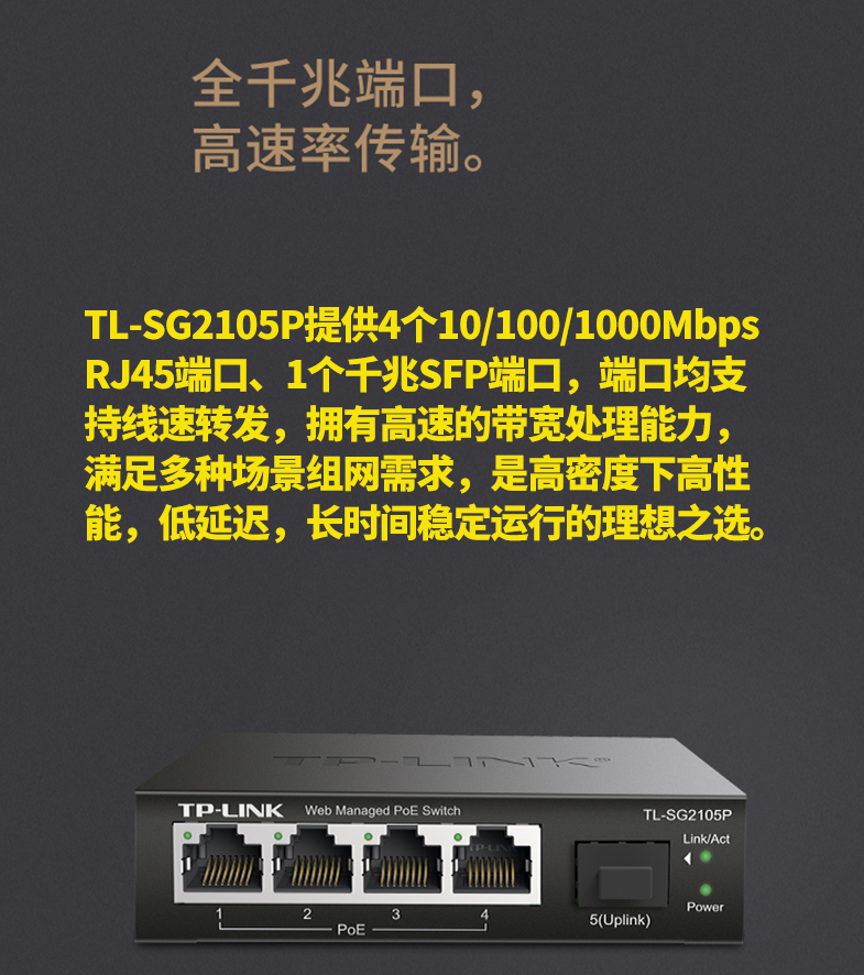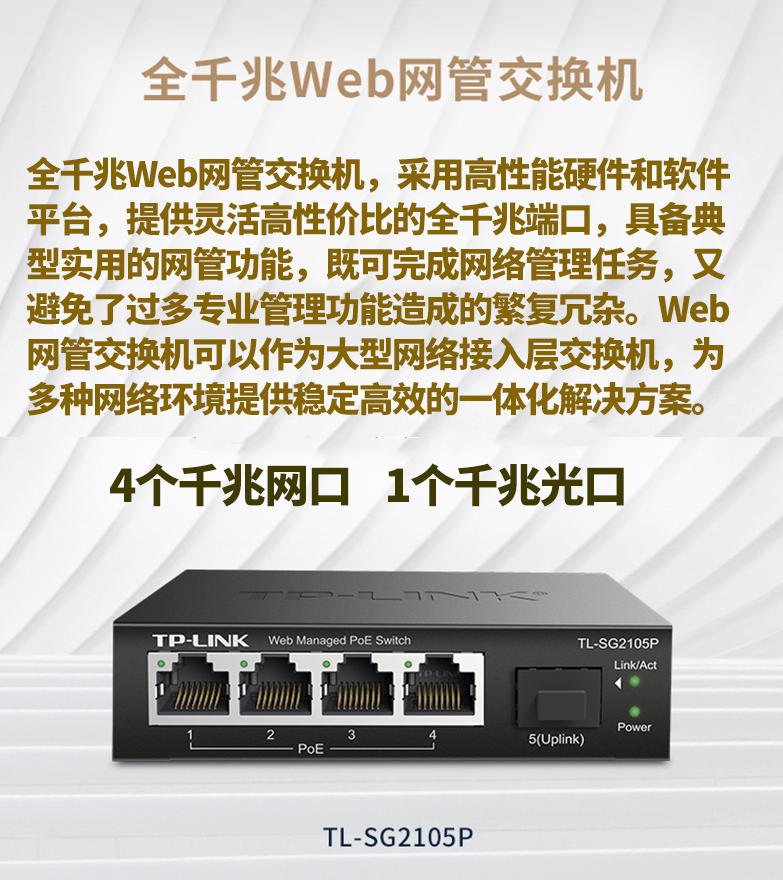 以太網(wǎng)交換機(jī)普聯(lián)/TP-LINK企業(yè)級(jí)網(wǎng)管型POE供電5口千兆TL-SG2105P/臺(tái)