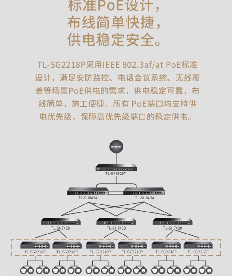 以太網(wǎng)交換機普聯(lián)/TP-LINK網(wǎng)管型云管理POE供電交換機 16口千兆 企業(yè)級TL-SG2218P/臺