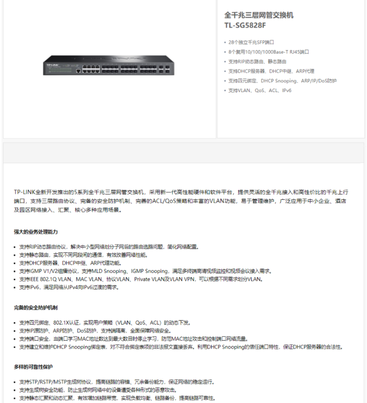 以太網(wǎng)交換機(jī)普聯(lián)/TP-LINK28口千兆匯聚核心光纖 企業(yè)辦公組網(wǎng)分線器交換機(jī)TL-SG5828F/臺(tái)