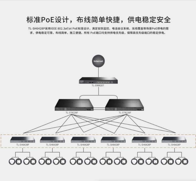 以太網(wǎng)交換機(jī)普聯(lián)/TP-LINK企業(yè)級(jí)商用核心交換機(jī) 支持VLAN 24口千兆TL-SH6428P/臺(tái)