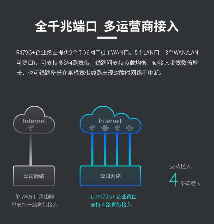 路由器普聯(lián)/TP-LINK多WAN口全千兆9口有線路由器TL-R479G+/臺(tái)