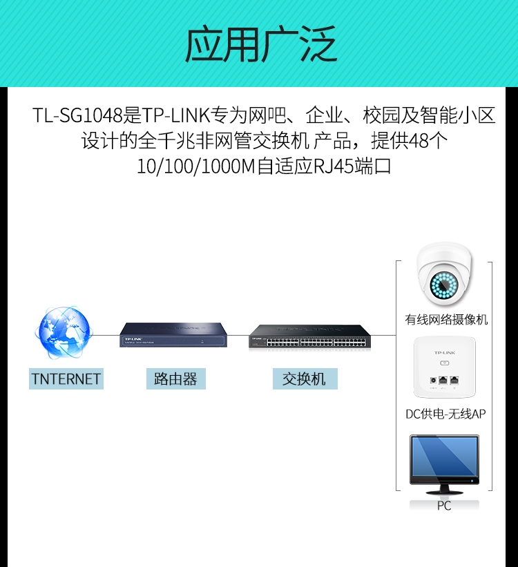 以太網(wǎng)交換機(jī)普聯(lián)/TP-LINK48口全千兆交換機(jī)企業(yè)級TL-SG1048/臺