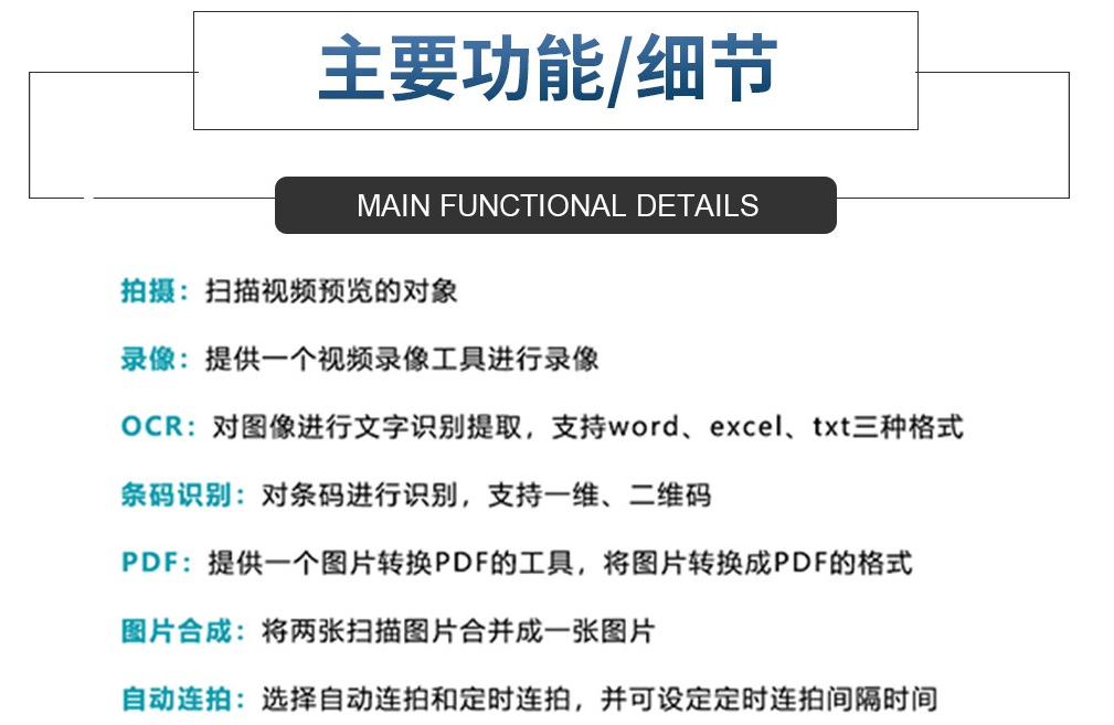 像素(高拍儀)  :   1000W