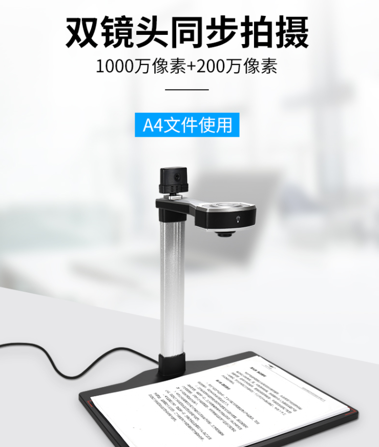 掃描儀良田/eloam高拍儀 雙攝像頭1000萬A4幅面 窗口辦公掃描儀S1002/臺