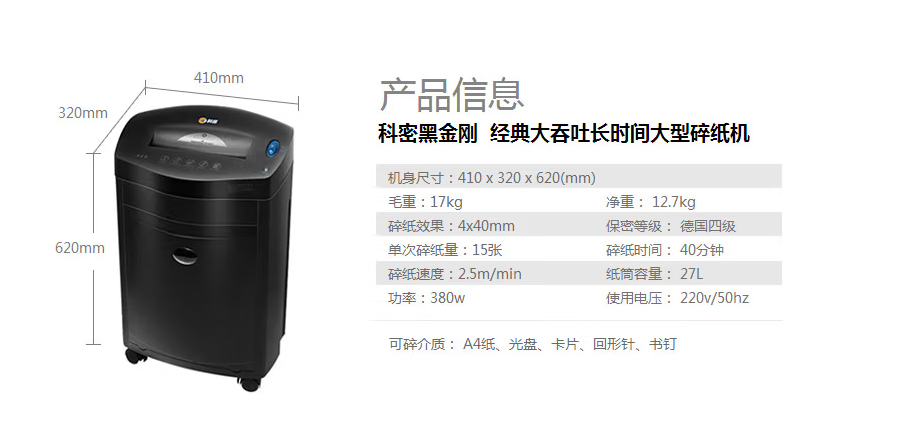 碎紙寬度(mm)  :   220
